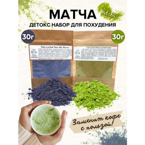 Голубая матча, 30 гр. и Зеленая матча 30 гр. Набор чая для похудения.