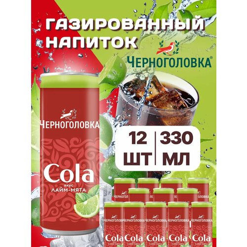 Газировка Черноголовка Кола Лайм Мята 12 шт по 330 мл