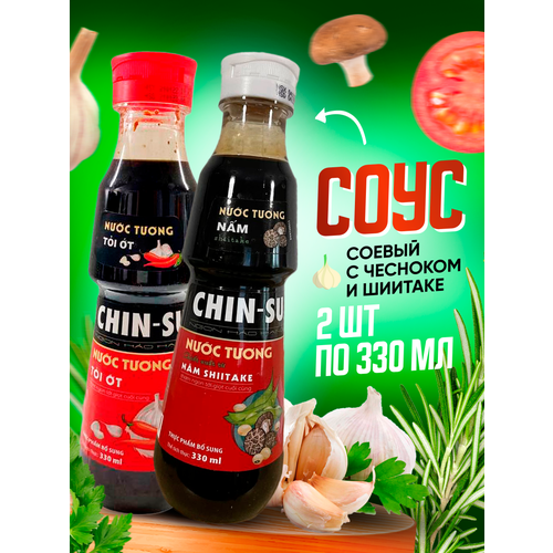 Соевый соус Chin-su Чин-су с грибами шиитаке и перцем чили и чесноком, 2 вкуса по 1 шт.