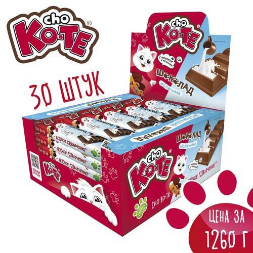 Шоколадные батончики, CHO KO-TE молочный шоколад С молочной начинкой 42 гр, 30 штук в шоу-боксе