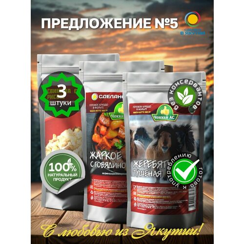 Предложение №5 от ЧоккайАс из 3 блюд, свинина с рисом/жаркое с говядиной/жеребятина тушёная, 900 гр.
