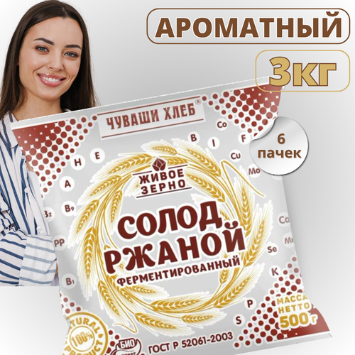 Солод ржаной Чуваши Хлеб 3 кг, неферментированный белый, для хлеба, кваса, пива