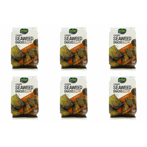 CJ Снек из морской капусты со вкусом барбекю Bibigo, 5 г, 6 шт