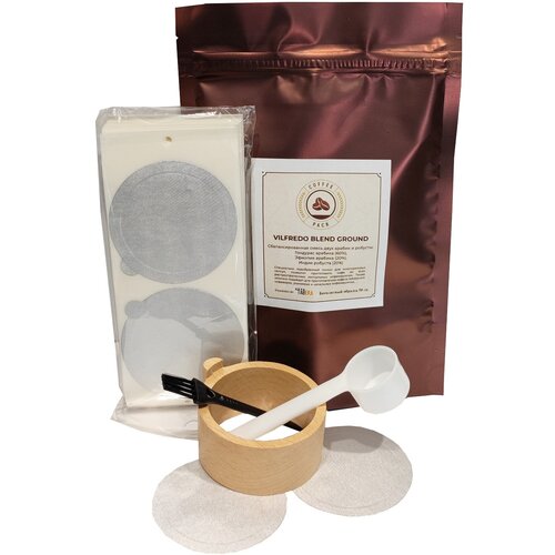Самоклеящиеся крышки из фольги для капсул Nespresso Vertuo 59 мм — 50 шт, держатель для капсул Nespresso Vertuo — 1 шт , кофе молотый 50 гр.