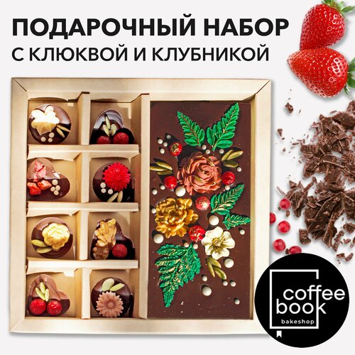Шоколад подарочный, Клубничный и темный бельгийский шоколад с корицей, орехами и сублимированными ягодами, 260 гр.