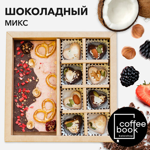 Конфеты подарочные, Конфеты с белым и темным бельгийским шоколадом с орехами, тыквенными семечками и кокосовыми чипсами