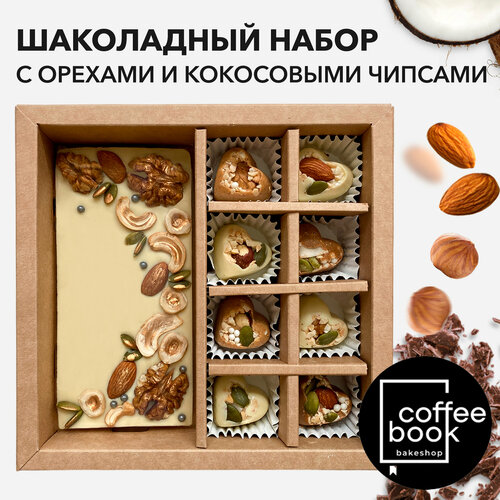 Шоколад подарочный, Белый шоколад с орехами, тыквенными семечками, шариками криспи и кокосовыми чипсами, 260 гр
