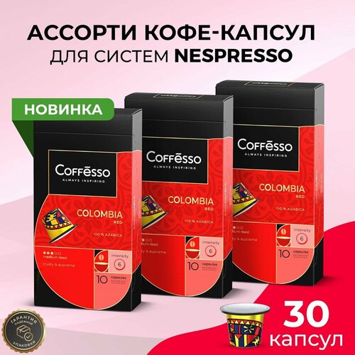 Кофе в капсулах Nespresso Coffesso Colombia Red набор 3 упаковки x10шт