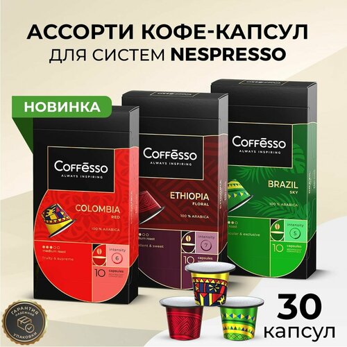 Кофе в капсулах Nespresso Coffesso Brazil, Colombia, Etfiopia ассорти набор 3 упаковки x10шт