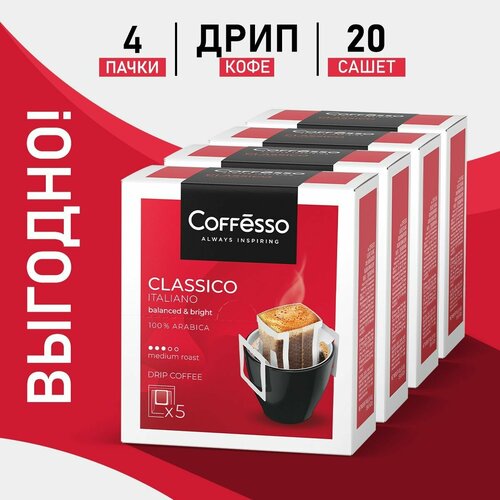 Молотый кофе Coffesso Classico Italiano, в дрип-пакетах, 20уп по 9 грамм