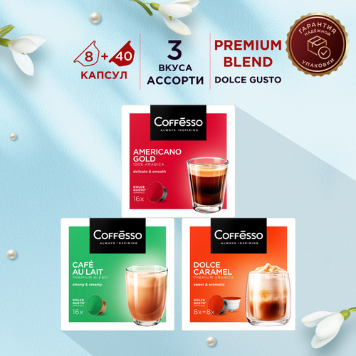 Кофе Coffesso Dolce Gusto (CAFE AU LAIT l, Caramel, Americano), ассорти набор, 3 уп х 16 капсул