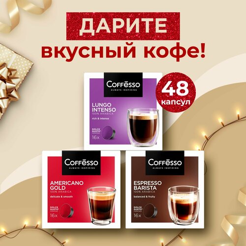 Кофе Coffesso Dolce Gusto (Americano, Espresso, Lungo) sto (Americano, Espresso, Lungo), ассорти набор, 3 уп х 16 капсул
