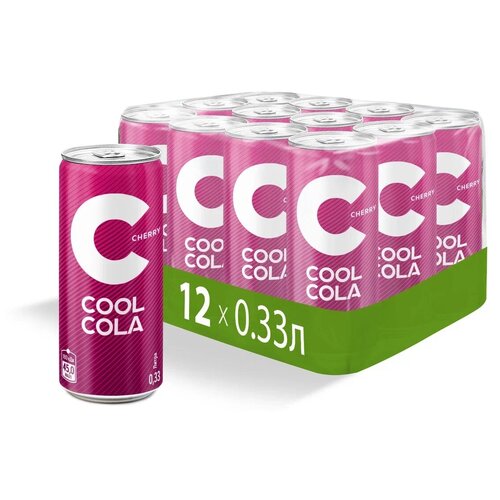 Напиток "Кул Кола Вишня" ("Cool Cola CHERRY") безалкогольный сильногазированный, а/б 0.33 (упаковка 12шт)