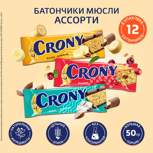 Мюсли батончики злаковые набор 12 штук по 50 гр Банан и шоколад CRONY ЛЕОВИТ