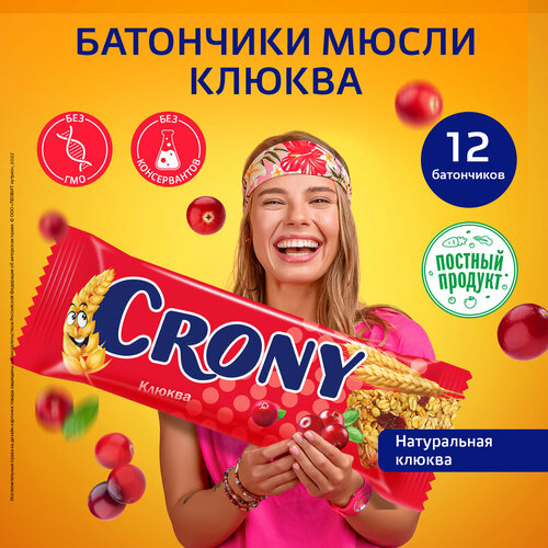 Батончик мюсли Клюква CRONY леовит Упаковка 12 батончиков по 50 г