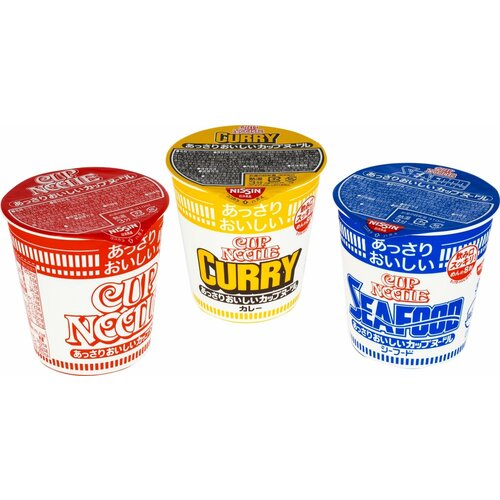 Суп-лапша быстрого приготовления Cup Noodle — 3 штуки в наборе(со вкусами карри, креветки и соевым соусом, морепродуктов), Nissin, Япония