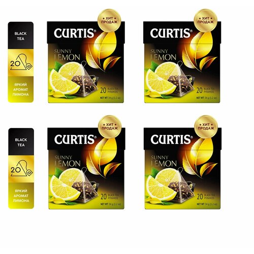 Чай черный Curtis Sunnyс ароматом лимона цедрой цитрусовых и лепестками цветов 20 пирамидок 4 упаковки