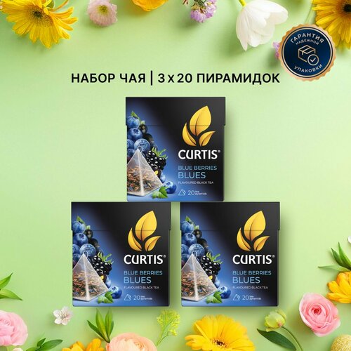 Чай черный ароматизированный CURTIS Blue Berries Blues, набор 3 уп х 20 пир