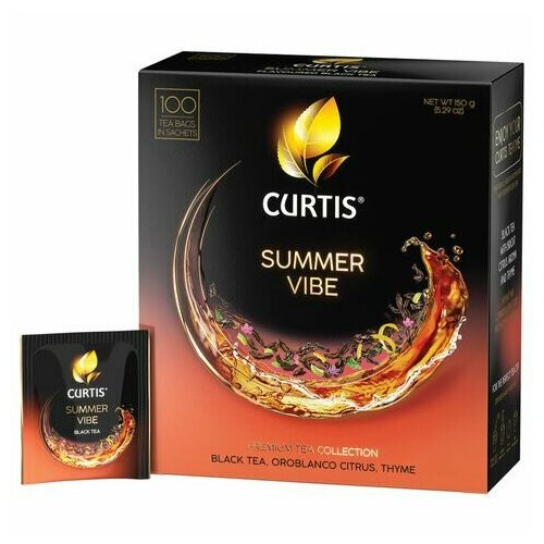 Чай CURTIS "Summer Vibe", черный с мятой и ароматом цитрусовых, 100 пакетиков в конвертах по 1,7 г, 102558