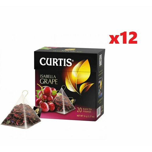 Чай Curtis Isabella Grape черный листовой с кусочками и ароматом винограда 20 пирамидок 12 упаковок