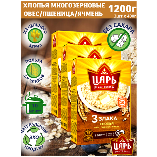 Набор Хлопья многозерновые Царь из 3-х злаков. Каша быстрого приготовления 400г. 3шт.