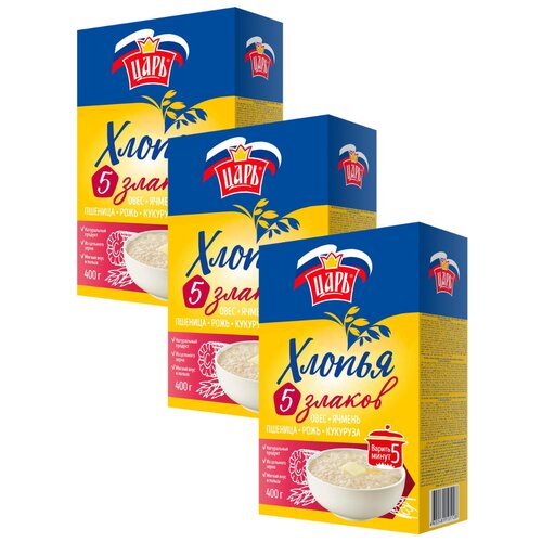 Хлопья из 5-х злаков "Царь" 400гр. х 5шт. Быстрого приготовления.