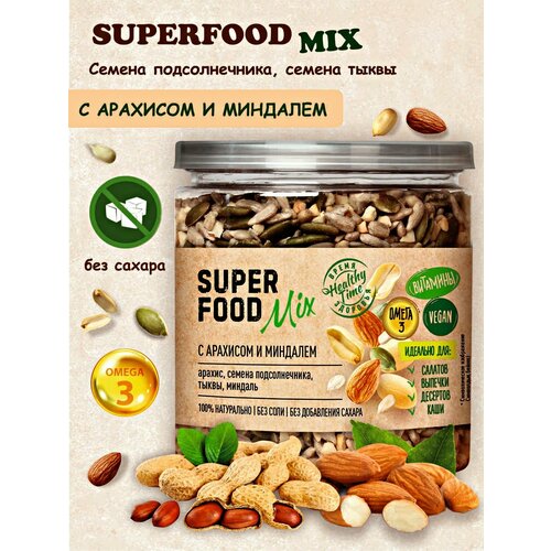 Ореховая смесь для салатов и выпечки, суперфуд арахис и миндаль, без сахара и соли, 260 г, для здорового питания