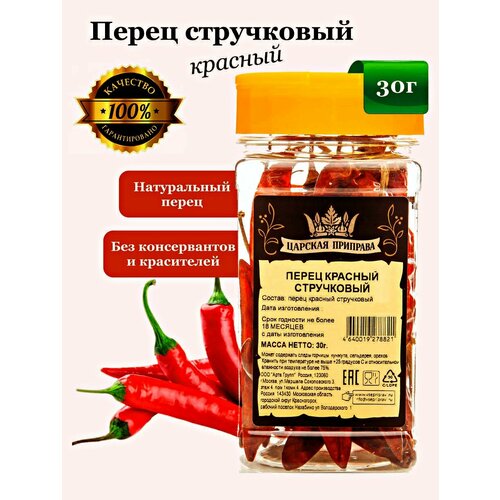 Перец красный стручковый острый натуральный Царская приправа 30 г, целый