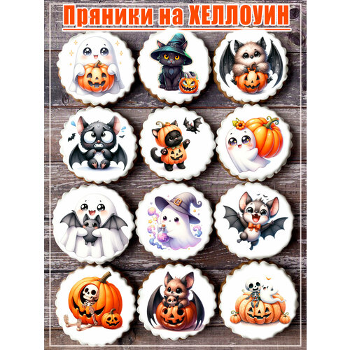 Имбирные пряники на хэллоуин Halloween детские зверята 12шт