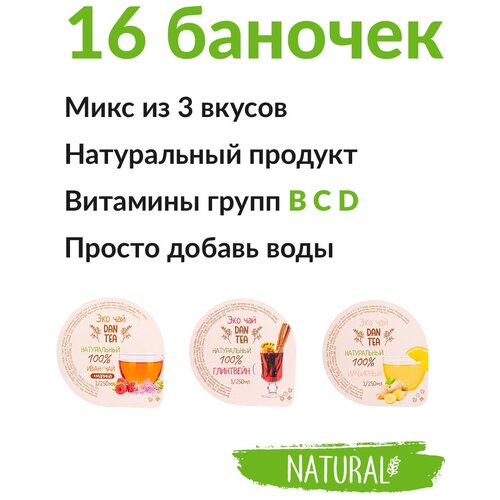 Набор порционного чая Dan Tea иван-чай с малиной, глинтвейн, имбирь-лимон 16 баночек дип-пот по 50 г