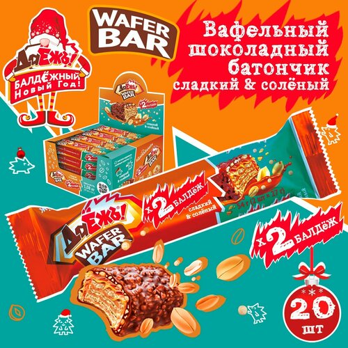 Конфеты ДаЁжъ WAFER BAR с карамелью, арахисом и солеными кранчами 54 г (2в1), шоубокс 20 шт.