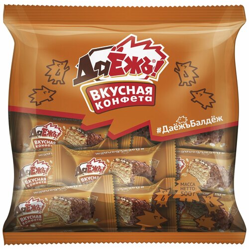 Конфеты вафельные Даёжъ! с карамелью, арахисом и криспи, пакет 500г.