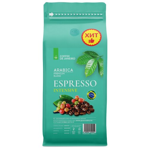 Бразильский кофе в зёрнах DE JANEIRO (Де Жанейро) ESPRESSO PREMIUM (100% Арабика — Сул Де Минас), 1кг в упаковке Zip-Lock / Зерновой кофе 1 кг