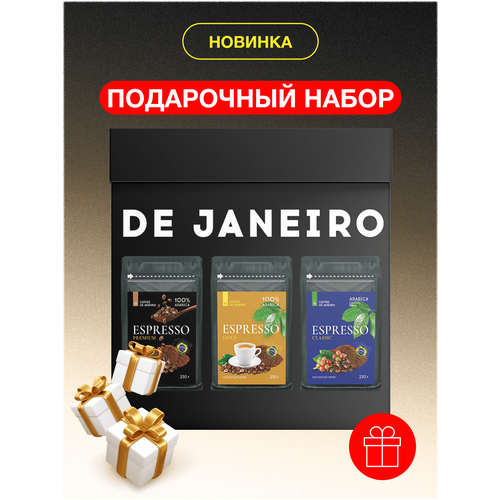 Подарочный набор DE JANEIRO (ДЕ жанейро), молотый кофе 100% Арабика, 3 вкуса
