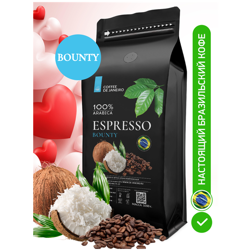 Ароматизированный кофе в зёрнах DE JANEIRO (ДЕ жанейро) Espresso Bounty (100% Арабика, Баунти), 1 кг