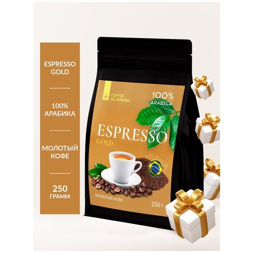 Бразильский молотый кофе DE JANEIRO (Де Жанейро) ESPRESSO GOLD, 100% арабика, 250 г