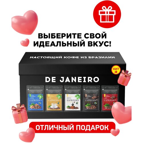 Подарочный набор кофе в зёрнах DE JANEIRO (Де Жанейро), 5 кофейных вкусов, настоящий кофе из Бразилии в зёрнах