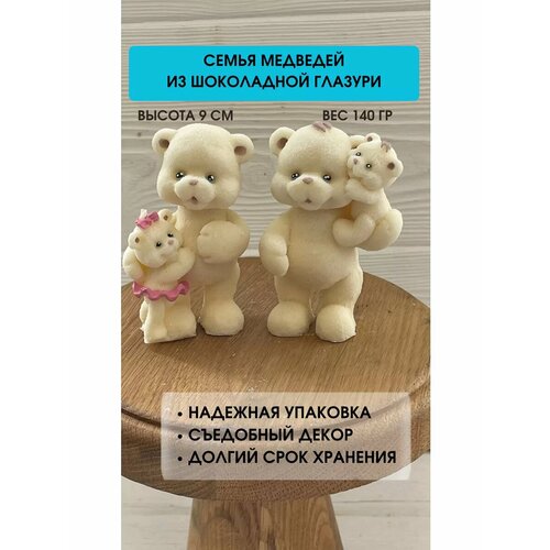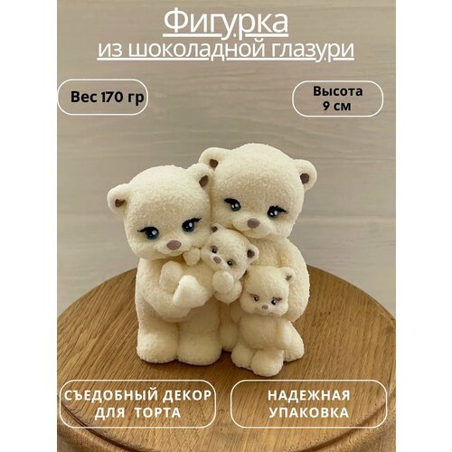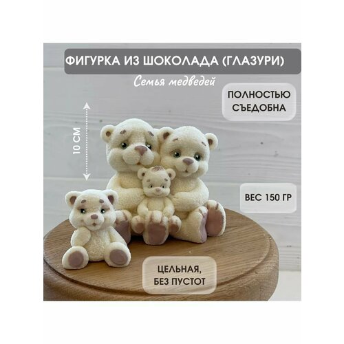Украшение для торта. Фигурка из шоколадной глазури. Семья медведей. Двое детей.