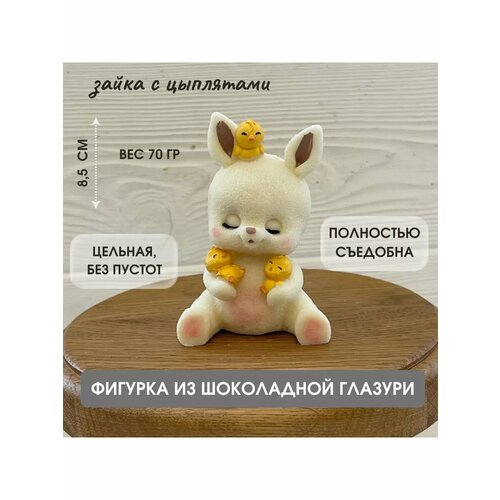 Украшение для торта. Фигурка из шоколадной глазури. Пасхальный зайка с цыплятами.