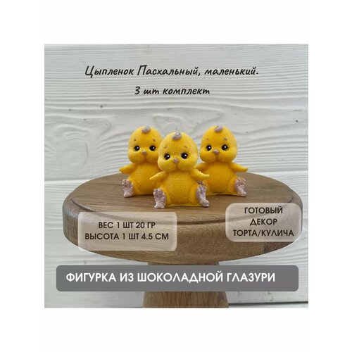 Украшение для торта. Фигурка из шоколадной глазури. Пасхальный цыплёнок. 3 штуки.