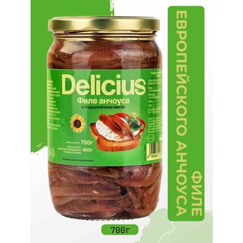 Филе анчоуса Delicius в подсолнечном масле, 700 г.
