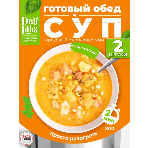 Готовое блюдо DeliLabs Суп гороховый с копченостями 300 г, 2 упаковки, готовая еда в упаковке