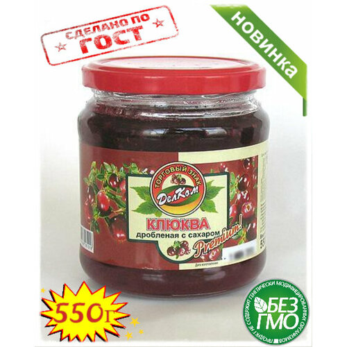 Клюква дроблёная (протертая) с сахаром 550г