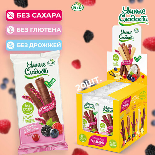 Батончики амарантовые Умные Сладости, безглютеновые с начинкой лесная ягода, в глазури (20 шт*20 гр)