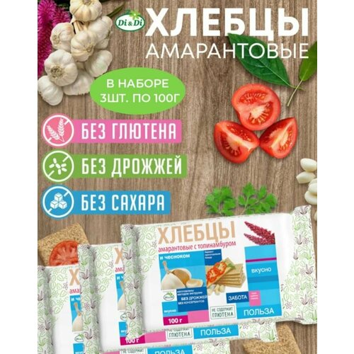 Хлебцы амарантовые с топинамбуром и чесноком/Di&Di (в наборе 3шт. по 100г)