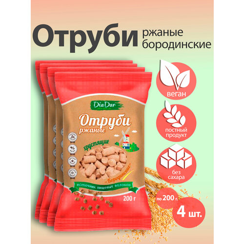 Отруби "диадар" Ржаные-бородинские 4 шт по 200 гр / веган / пост/ без лактозы