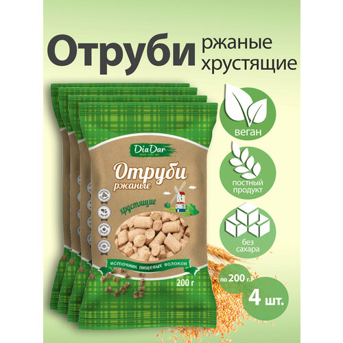 Отруби "диадар" Ржаные 4 шт по 200 гр / веган / пост / без лактозы