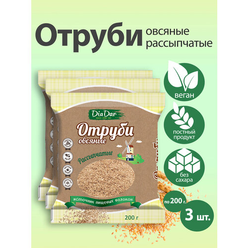 Отруби рассыпчатые диадар Овсяные 3 упаковки по 200 грамм
