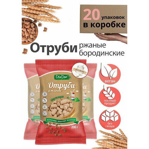 Отруби хрустящие без сахара диадар Ржаные-бородинские 20 шт по 200 гр без фруктозы / пост