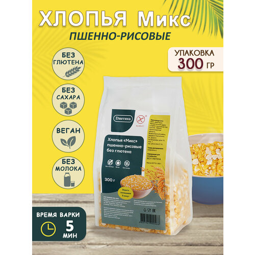 Хлопья "Микс" пшенно-рисовые без глютена 300 г, Диетика (2 шт в наборе)